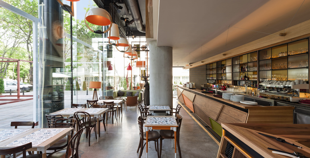 Chic Sunset Vibes at Boutique Cafe with Stylish Glass Lighting