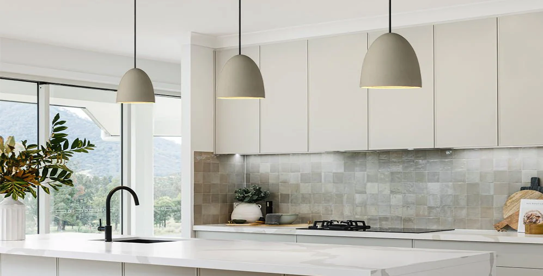 Modern Kitchen Island: Minimalist Stone Pendant Light