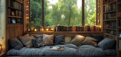 Cozy Reading Nook: Warm Sunset Light Accent
